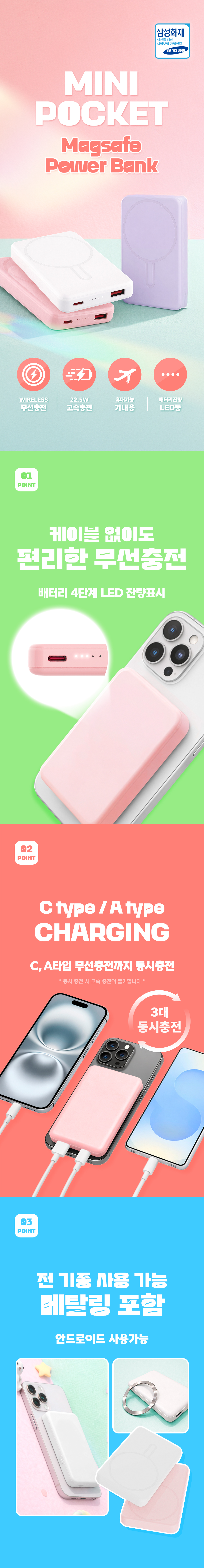 ´õ¸¶ÀεåÇ® 5000mAh PD 22.5W Ãʰí¼Ó ¸Æ¼¼ÀÌÇÁ º¸Á¶¹èÅ͸® »ö»ó 3Á¾