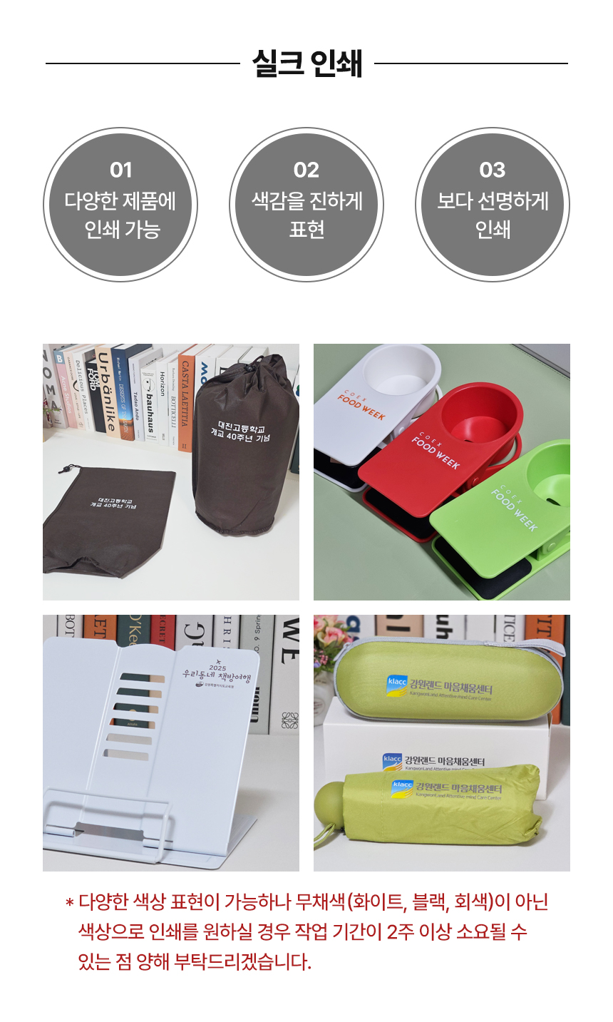 »ö»óÀÇ »ç¼ÒÇÑ Â÷À̰¡ ¹®Á¦ µÉ °ÍÀ¸·Î ¿¹»óµÇ´Â °æ¿ì¿¡´Â »ùÇÃÀ» ¹Ì¸® È®ÀÎÇØ ÁֽǰÍÀ» ±ÇÇØµå¸³´Ï´Ù. - 2 Àμ⸦ ÇϽô °æ¿ì, ´ç»ç¿¡¼´Â °í°´´ÔÀÌ º¸³»ÁֽŠ¿ø°í ¹× µµ¾ÈÀ» ±âº»À¸·Î ÇÏ¿© Çʸ§À» Á¦ÀÛÇϰí, Á¤È®¼ºÀ» ±âÇϱâ À§ÇØ °í°´´Ô°ú ÀçÈ®ÀÎ ÈÄ ½ÇÁ¦ ÀμâÀÛ¾÷À» ÇÕ´Ï´Ù. (ÃÖÁ¾ µðÀÚÀÎ ½Ã¾ÈÀÇ À߸øµÈ È®ÀÎÀº Ã¥ÀÓÀÌ ¼ö¹ÝµÇ¹Ç·Î Á¤È®ÇÏ°Ô È®ÀÎÇÏ¿© Áֽñ⠹ٶø´Ï´Ù.)